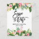 Modern Brush Script, Watercolor Tropical Floral Greenery, Save The Date Engagement Postcard with Pink Flamingo