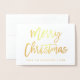 Brush Script Star Merry Christmas Photo Gold Foil Card