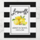 Modern Brush Script, Elegant Watercolor Lemons Greenery Limoncello Wedding Bottle Labels with Black and White Stripes
