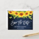 Brush Script Sunflowers Blue Wood Save the Date Postcard