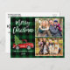 Brush Script Truck 2 Photo Christmas Green Plaid Postcard