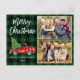 Modern Brush Script Watercolor Vintage Red Truck with Christmas Tree - Merry Christmas Family 2 Photo Green Plaid Postcard