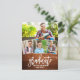 Modern Brush Script 4 Photo Graduation Announcement Postcard - Rustic Wood