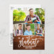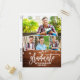 Modern Brush Script 4 Photo Graduation Invitation Postcard - Rustic Wood and String Lights