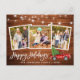 Brush Script Wood Lights Truck 3 Photo Holiday Postcard