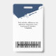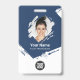 Easily personalize this Custom Brush Stroke Employee Name Badge with Photo, Scan Bar Code and business logo. A creative business design in navy blue and white colors with employee photo into brush stroke shape, fully customizable, in front and back sizes, sans-serif basic and modern fonts and a creative, eyecatching and clear look. Avaiable with lanyard, metal clip or with retractable. No minimum order.