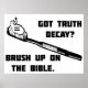This Christian design features a toothbrush and says “Got truth decay? Brush up on the Bible.” The toothbrush has toothpaste on it which says “God’s Word.” Customize this with your own images or text by clicking the "Customize it" button.