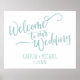 Welcome your wedding guests in style with this fun, casual "Welcome to our Wedding" sign. Personalize with your names and date. This one is set in light turquoise, but you can change the design color just by changing the background color! Size: 16 x 20