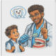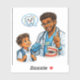 Cute dentist cartoon sticker showing a friendly dental professional teaching kids to brush their teeth. Perfect for dentists, dental clinics, and children learning good oral hygiene. Great as a fun and educational gift.