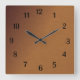 Brushed Copper Look 2 Black Numbers Square Wall Clock