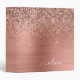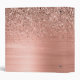 Brushed Metal Rose Gold Pink Glitter Monogram 3 Ring Binder