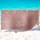 Brushed Metal Rose Gold Pink Glitter Monogram Beach Towel