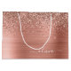 Brushed Metal Rose Gold Pink Glitter Monogram Large Gift Bag