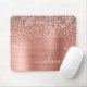 Brushed Metal Rose Gold Pink Glitter Monogram Mouse Pad