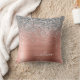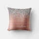 Brushed Metal Rose Gold Silver Glitter Monogram Throw Pillow
