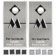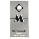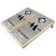 This is a corn hole set, featuring brushed nickel photo artwork, printed on natural wood boards. The boards have black monograms, family name, and "motto", trimmed in white.