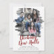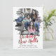 This brushed red decking new halls moving announcement holiday card is the perfect simple holiday greeting and to announce your new address. The unique and artistic design features your photo in watercolor painted brush strokes with modern calligraphy in red and white. Personalize the card with your family photo, names and year on the front and your new address on the back.