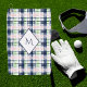 Brushstroke Navy Blue Preppy Plaid Monogrammed Golf Towel