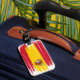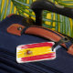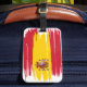 Luggage tag features Artistic brushstroke illustration of Spain's national flag