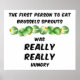 The first person to eat brussels sprouts was REALLY, REALLY hungry text with a row of brussels sprouts is a humorous gift design for those who find the green vegetable morsels less than tasty.