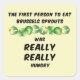 The first person to eat brussels sprouts was REALLY, REALLY hungry text with a row of brussels sprouts is a humorous gift design for those who find the green vegetable morsels less than tasty.