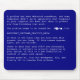 A blue mousepad featuring a parody of the infamous BSOD (Blue Screen of Death).