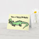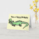 Hilarious funky cartoon alligator happy birthday card says Have a happy birthday outside and inside says .... or else. Also a tiny gator inside. Cute and fun and original.
