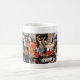 Classic, sturdy porcelain mug with a colorful mosaic of Bash the Trash performances, performers, instruments and audience members