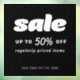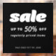 Customize all of the colors and text below "Sale". "Sale" graphic can be scaled or edited in color, or deleted to add your own text. You can also add a background color and choose the opaque.