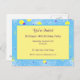 Colorful purple and yellow dots on a textured blue background make a great personalized birthday invitation design.