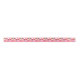 A ribbon resembling the candy dots you used to buy at the corner store -- complete with mint green, vanilla white and chocolate. The bubblegum pink adds a girlie festive flair-- ribbons for hair or gifts or wedding belts. Note there are groupings of dots with a slight space of pink, making cutting and measuring easier.