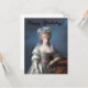 Madame du Barry blowing a pink bubble gum with mottled blue background