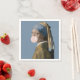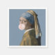Pop art vintage remix of a Girl with the Pearl Earring blowing a pink bubble gum