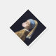 Pop art vintage remix of a Girl with the Pearl Earring blowing a pink bubble gum