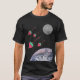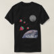 A holiday space fantasy with bubble light space ships orbiting the Earth with the moon in the distance and a starry sky background. A science fiction art illusion.