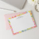 The paper notecard features a delightful pattern inspired by bubble tea, designed in warm and vibrant watercolor palette of green, orange, pink, yellow, gray and blue. The background showcases an array of cute and whimsical bubble tea illustrations.