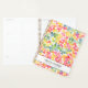 Brilliant and Bright, eye-catching and feminine watercolor circle themed NOTEBOOK PLANNER featuring a pattern inspired by the delightful world of bubble tea, incorporating warm and vibrant colors of green, orange, pink, yellow, and blue. with two line of custom text.