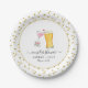 Cute, trendy & fun watercolor champagne and beer toasting to love Bridal/couples shower paper plates. Personalize with names of the bride and groom and shower date.