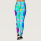 Fun and playful design on these wonderful leggings. Alight blue background with many colors of stripes, bubbles and hearts.