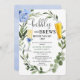 Bubbles Brews blue greenery couples bridal shower Invitation