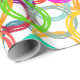 This wrapping paper has a geometric design of three circles nested together and spread throughout the design in several colors.