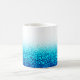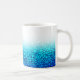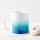 Bubbles in various blues froth up from the bottom of this mug.
