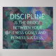 An inspirational gym, workout and exercise poster with colorful bubbles in green, blue and purple on a scratched steel background with a fitness quote by Felicity Luckey of Great Minds Think Fit™. The motivational quote reads: DISCIPLINE IS THE BRIDGE BETWEEN YOUR FITNESS GOALS AND FITNESS SUCCESS. ~ Felicity Luckey