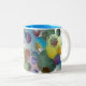three dimensional bubbles that have the illusion of stained glass. Most ANY COLOR on the inside blends well with this design. color and style of mug can be changed. look for matching plates.