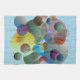 a collage of circles and rings in a three dimensional design with a soft linen texture created this illusion of floating bubbles. fun towel to match any color scheme. digital computer art by kaps images