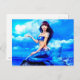 Fantasy card with a beautiful bubbly mermaid sitting on a rock and strewing around some magic.
