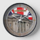 This England-themed wall clock features a picture of the Eastern façade of Buckingham Palace with the Union Flag in the background and the word "London" in the middle. Note: the metallic look is simulated in the artwork. No actual metal will be used in the printing of this wall clock.