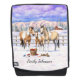 A family of buckskin or dun pinto horses in their winter ranch corral.