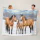 Buckskin Quarter Horses In Snow Fleece Blanket
