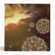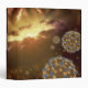 Buckyballs floating in interstellar space near a region of current star-formation featured with atoms.